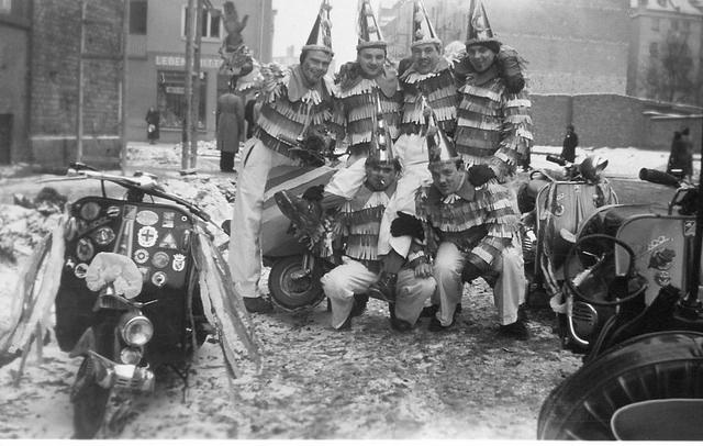 Gegründet wurde unser Verein im Dezember 1952 mit 23 Mitgliedern als gemeinnütziger Verein. Zu dieser Zeit war es üblich dass man sich gegenseitig unterstütze weil die Vespa nicht das zuverlässigste Fortbewegungsmittel war. So kam man mit anderen Fahrern ins Gespräch und es bildeten sich schnell Freundschaften. Als Verein wollte man diese Freundschaft unterstreichen und so organisierten unsere Mitglieder bereits ab Januar 1953 Maskenbälle zu Fastnacht und nahm regelmäßig als Teilnehmer und später als Zugpolizei des MCV an den Rosenmontagsumzügen teil.